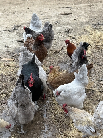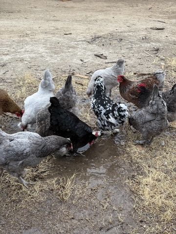 Variety of laying hens. Wanting to sell 10 as a group (one must be a bantam) and buyer must take one bantam rooster (for free). They're healthy birds, the full sized hens are $20 each and bantam hens are $10.
