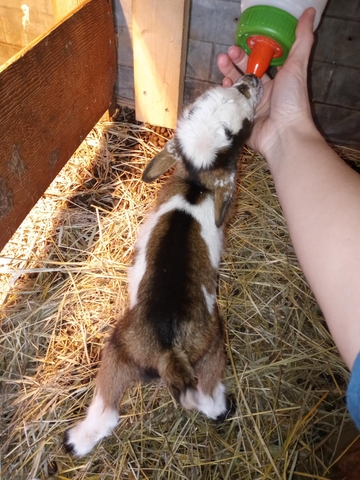 We have one bottle baby looking for a new home. This sweet little guy takes the bottle well and loves pets. He comes from great milking lines and would make an excellent herd sire or would do just fine as a 4 legged friend! Can be registered with ADGA if desiring to breed with in the future. Born 3/3/26.