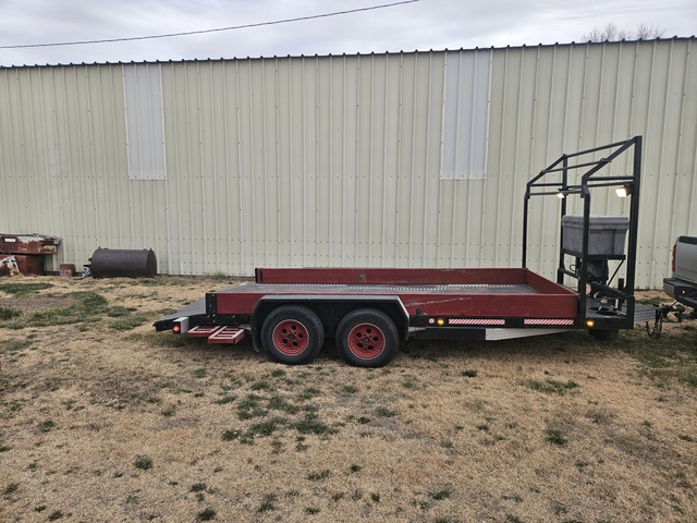 18 foot trailer 16' flat 2' dovetail 83" between the fenders.