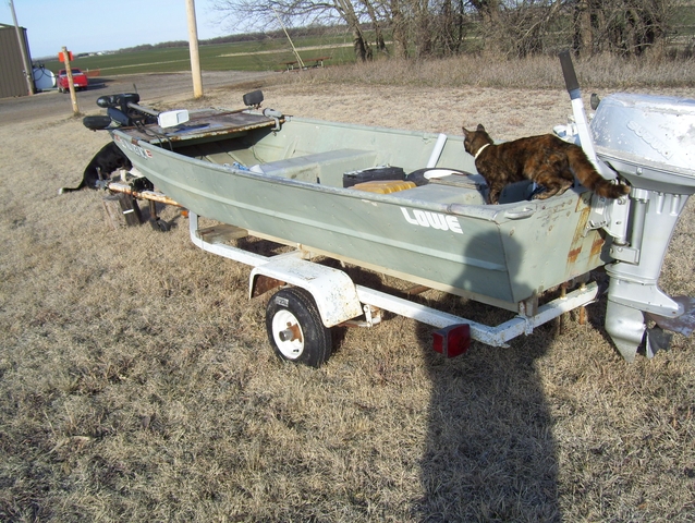 Aluminum Lowe boat with old 9.5-10 HP motor. Another old motor available for parts Boat has trolling motor and trialer available as group or consider separating. Registered in Saline County. Not used for several years. Taking reasonable offers. You may text 785 eight two two 8738
