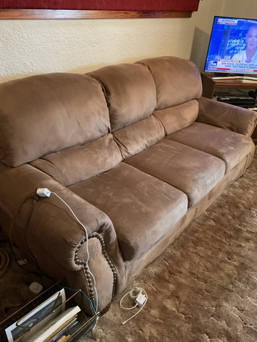 Approximately 90 inches long, overall width. Moving must sell. Will help load. Price reduced .