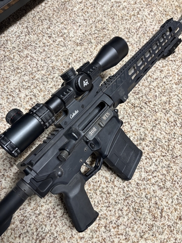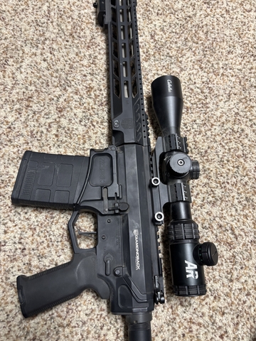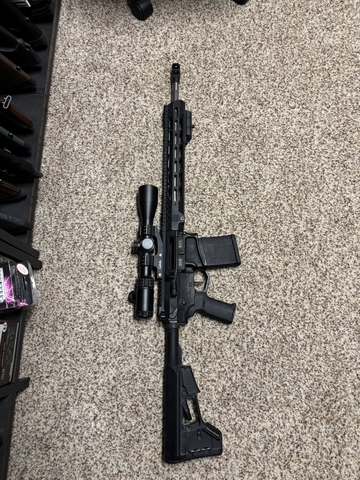 Diamonback ar-10 308. Has a 308 reticle cabelas brand scope on it with illuminated reticles. Comes with 2 10 round mags and 1 20 round mag. Also comes with 6 boxes of ammo. $1400 obo Call or text 785-620-7566