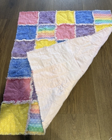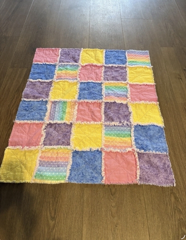 Handmade baby blanket rag quilt. It has been washed and dried twice to start the ragging process. The more it is washed and dried, the 'snugglier' it becomes. It measures 28" wide x 33" long. It is 100% cotton. πΌππ©΅ππ