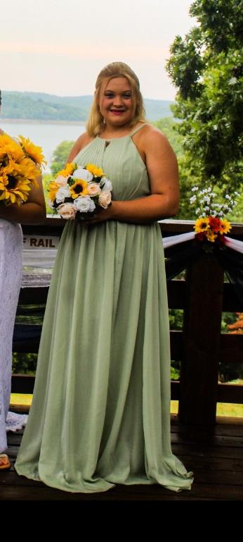 Size 10 adult dress. Only wore once for sisters wedding so great condition. Asking $50 or best offer. If interested or any questions please text me, Katelyn Binder at 785-412-0653.
