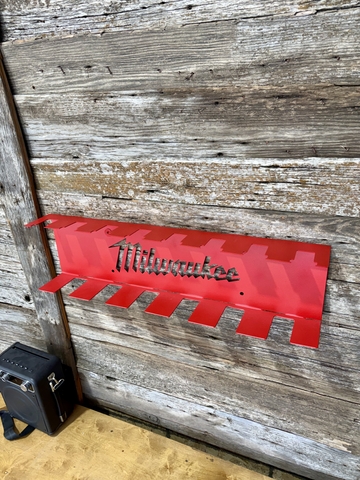 Heavy duty tool and battery holder racks made from steel. Perfect for organizing your shop, garage, or trailer.