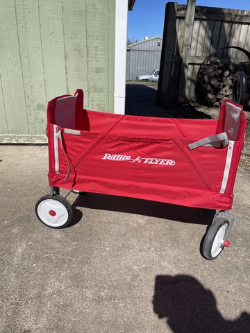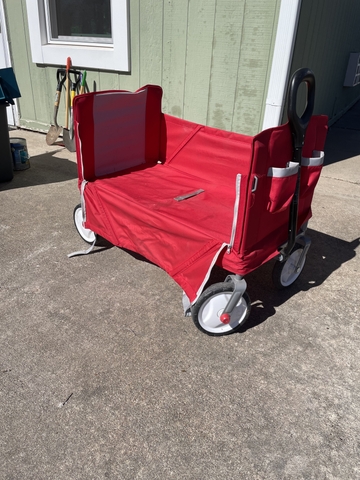 Used wagon. Perfect for zoo outings or state fair with little children. Un zip the side and works as a bench for adults too. Needs cleaned. $30 cash 620-285-1068