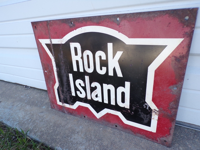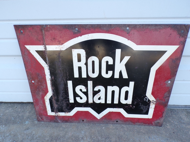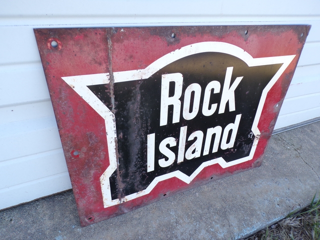 Old original Rock Island railroad sign. 18" x 13 1/2". Call 6206176644 - emails & texts are usually ignored as a scam.