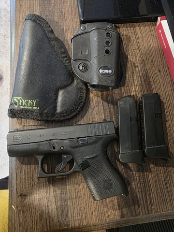Glock 42 with 2 mag each mag has mag extension, 2 holsters