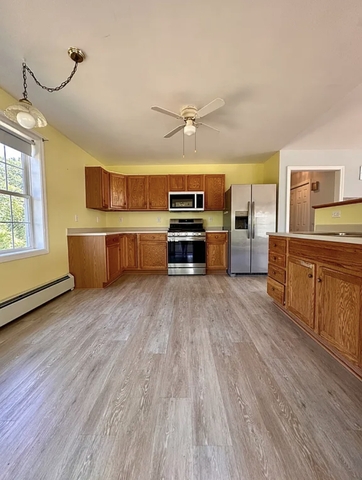 Welcome to this conveniently located single-family home in Portsmouth, NH! This well-maintained property offers one floor living with 3 spacious bedrooms and 2 full bathrooms, featuring an open-concept layout perfect for both everyday living and entertaining. The vaulted ceiling in the living room adds a bright, airy feel, while the adjacent kitchen flows into a four-season sunroom ideal for relaxing or enjoying your morning coffee year-round. This home offers a mix of manufactured hardwood flooring, a carpeted primary bedroom, and tiled bathroom floors. The primary suite includes generous closet space and an en suite full bath. A dedicated laundry room with washer and dryer adds convenience, and there is ample storage throughout the home. Additional highlights include an attached two-car garage, a gas range for the home chef, and solar panels to help reduce electricity costs. Located in a beautiful neighborhood just minutes from downtown Portsmouth, area beaches, and all major commuter routes, this home offers the perfect blend of comfort, efficiency, and location.