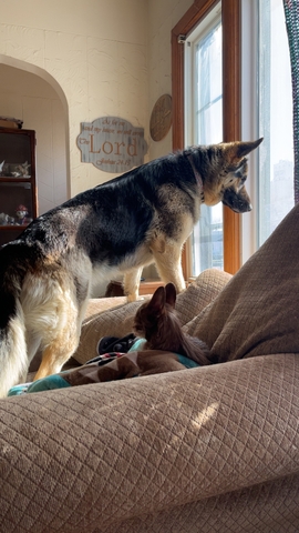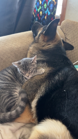 Kennel trained but been awhile since she has been in one. does good with inside cats. She loves to run but doesn't leave my yard when I am out there. Rehoming due to health