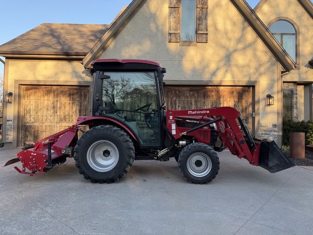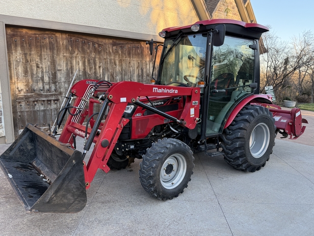 Cab features include: A/C, Heat, Radio - Bluetooth, Deluxe Seat. Equipped with front and rear work lights at the top of the cab. The cab is a $9700 option on a new tractor. Mahindra still makes the 2638 model, and this one prices at $45,123 on Mahindra's website. https://www.mahindrausa.com/series/2600