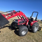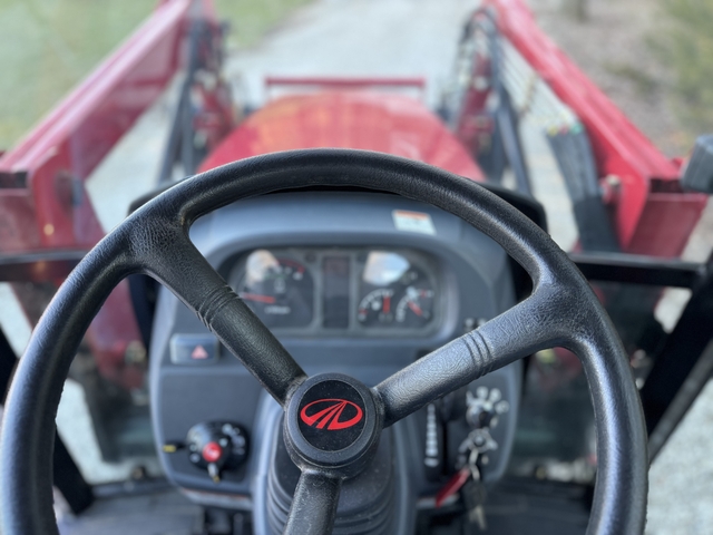 2018 Mahindra 2638 HST utility tractor with 4x4. Engine is a 3-cylinder diesel engine rated at 38 horsepower. Transmission is hydrostatic with 3 ranges (L/M/H). Easy to drive with one pedal for forward and a separate pedal for reverse. Mahindra 2638CL Loader with joystick, 5' bucket and skid steer compatible connection for the bucket and attachments. Loader lift capacity of 1630 lbs. Category 1 3-point hitch with 2600 lbs lift capacity, 540 PTO and one set of rear hydraulic remotes for running attachments.