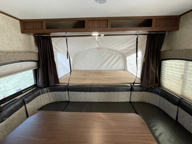 Aerodynamic, rounded front profile with front diamond plate Deluxe graphics package with 2-colored sidewall, TuffShellTM vacuum-bonded, laminated floor, side, rear and front walls including slide walls,Vacuum-bonded, laminated bed platforms with reverse-cambered support Magnum TrussTM Roof System with one-piece seamless DiFlex II material, Norco NextGen frame with integrated A-Frame, Equa-Flex® suspension, Double axle, G20-tinted safety-glass windows, Marine-grade exterior speakers (2), Black steel wheels with chrome center cap, Standard grease axle with solid-face dust cap, Impact-resistant wheel wells, Slide out with double seals, barrier sponges and U-channel drip spout, 30-amp service 20-pound propane bottle(s) with auto regulator, Outside grill LP quick-connect port, Stabilizer jacks with sand pads, 6-gallon gas/electric DSI Atwood water heater, Cable and satellite hook-ups, Water-repellent, scratch-resistant Jayco DuraTekTM vinyl tent material with zipper windows, Powder-coated, painted shepherd’s-hook tent supports, Permanently attached tent-to-bed base design, Self-supporting 1,100-pound-capacity lockable tent ends