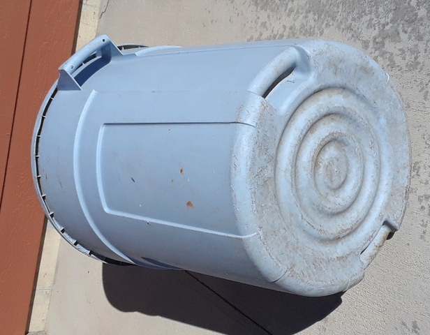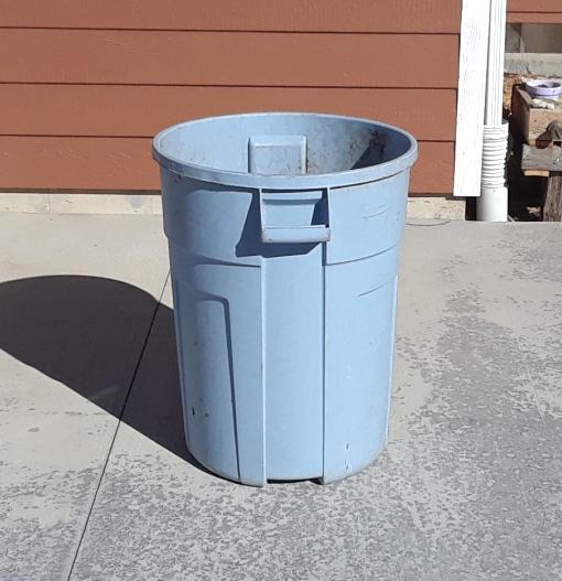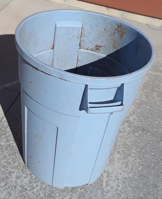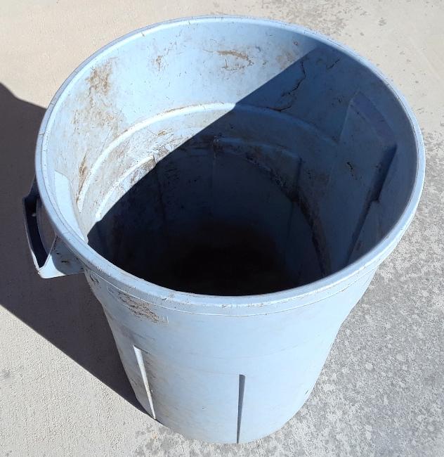 45 Gallon Trash Barrel - $10.00 Used trash barrel that had been used to haul grass clippings and yard waste. A little dirty but still works GOOD! Does not come with a lid.