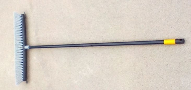 Commercial Grade Broom - $17.00 Heavy Duty NEW Contractors push broom with medium to stiff 2¾” premium polystyrene bristles. Broom is 24” wide with a 60” detachable metal handle. Molded hanging hole in the handle. Used only a few times.