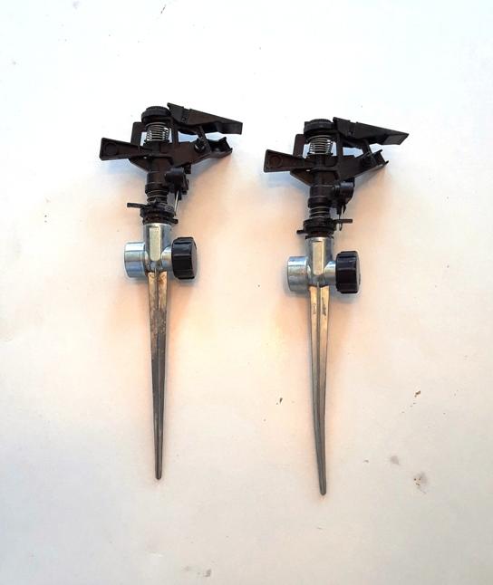 Pulsating Lawn Sprinkler - $8.00 Selling TWO metal/plastic pulsating lawn sprinklers. $8.00 each or TWO for $15.00. NEW (only used a few times) we moved from a LARGE property that needed several sprinklers, to a small lawn and don’t need these anymore. Brand: Orbit, Zinc spike, 80’ distance and adjust from a 10 or 20 degree pattern up to a full 360 degree pattern. They work good and you can come test them out before you buy them.