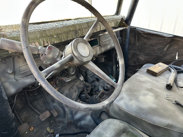 It has a Chevy V8 installed, but I have not tried to start the engine, so its condition is unknown. The transmission is currently locked in gear, so it will need repair before it can be driven.