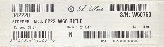 STOEGER MOD 022 W66 RIFLE 38sp cal