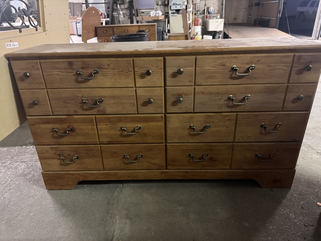 Nice wood set, dresser and mirror, night stand, and headboard. Queen size. Greg 785-425-8075