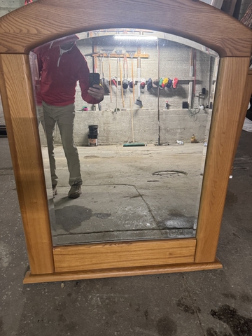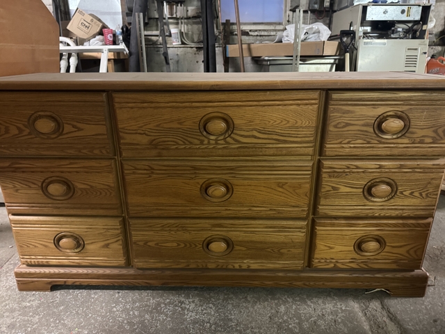 Nice wood set, dresser and mirror, night stand, and headboard. Queen size.  Greg 785-425-8075