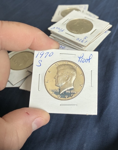 i have 19 40% Silver 1970 Proof Kennedy Halfs i'm going to sell. they all come as the one pictured. asking $285.....now $250 for all 19. message me with any questions.
