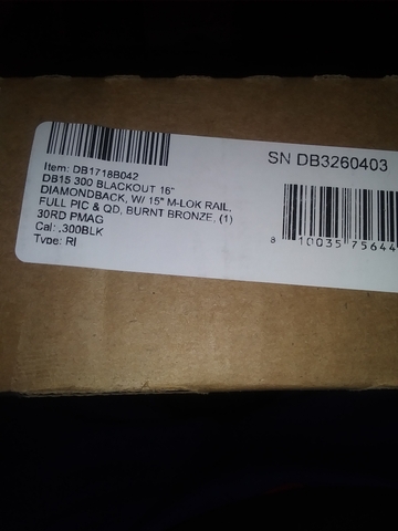 Diamondback 300 Blackout - Like New - Never Fired - Brunt Bronze - 16" Barrel - 15" MLOK - Cardboard Box - (1) 30rd MAGPUL Mag - Lock - Also (2) 50rd boxes of Ammo. CASH ONLY - NO TRADES. Will meet locally only. Text only - Dave @ 785-713-0739