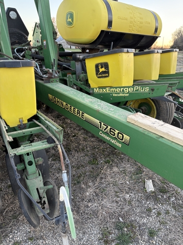 JD 1760 Flex Front Fold Planter. 12 row 30", Excellent shedded condition, new fertilizer tanks last year. 250 gallon times 2. Fertilizer rate is set at 7 gallons minute. JD 250 monitor. Double disk measures 15"(almost new). Yetter trash wipes are excellent. Comes with Corn, Bean and Milo Plates. Comes with extra Parts and a Book. This Planter is Field ready. $17,000