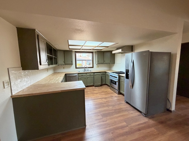 This well-maintained ranch-style home is ideally located in a quiet neighborhood in Burlington and offers comfortable living with excellent space both inside and out. The main level provides approximately 1,855 square feet of living area and features three bedrooms and 1¾ newly remodeled bathrooms. The home includes a spacious living room with a fireplace, creating a warm and inviting atmosphere, along with a chef’s kitchen designed for functionality and entertaining. Much of the main level features attractive wood flooring, adding warmth and character throughout the home.