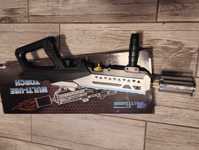 Multi-purpose torch/flamethrower. Brand new never used still in the box. The trigger is the igniter button and the flame control knob is on the top. $35 call or text 785-259-8140 for message me on here. It does not come with any but you just get those little camping Coleman propane bottles to screw in the bottom. At Walmart, Boomgars, tractor supply etc.
