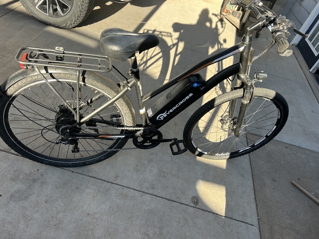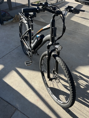 Bought last year and hardly used. EK28 model E bike. On a full charge The bike will go 30 to 60 miles. Top speed 15 MPH everything works fine and comes with charging cord. Paid a little over 500 for it asking 300 or best offer