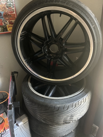 22 inch rims five lug bolt pattern. I had them on a Chevy square body. Two tires have slow leak and will need replaced. The tire size is 265–35–22.