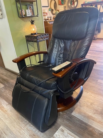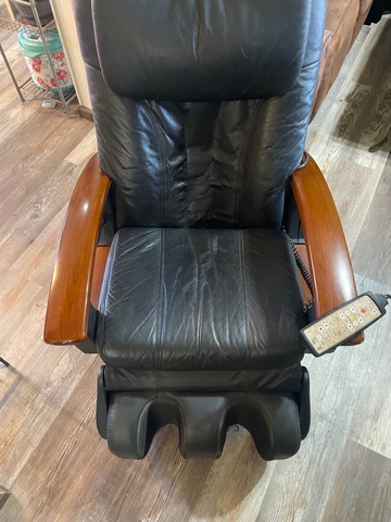 Reclines. Has leg massage, multiple settings for realistic back and neck massage.
