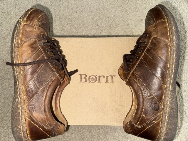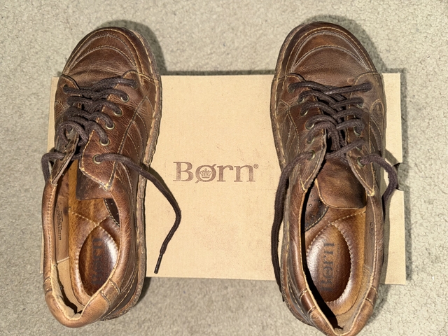 Ladies BORN brand leather shoes, size 9, LIKE NEW, barely worn. Brush included. These were purchased over 10 years ago and are in EXCELLENT condition, especially considering their age! Purchase price shown in photos. Selling for $50 CASH FIRM, IN-PERSON ONLY, in Hays.
