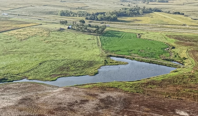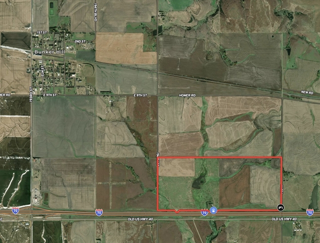 Convenient location, nearby utilities and a scenic 4 acre pond makes this an ideal building site. There is a water well and electricity already on site. Post Rock Rural Water District #4 water line runs through the land and fiber optic cable runs along 195th Street. Build closer to the outbuildings or near the pond. There are several outbuildings including a sizable red barn. A pipe corral is located just west of the barn and would work great for horses or small number of livestock. The driveway leading into the property is located less than 500 feet from Highway 40 and 2 miles from the on ramp of Interstate 70.