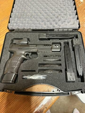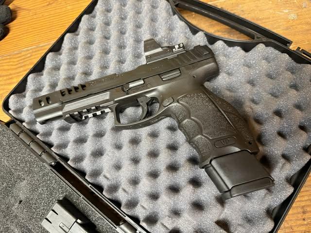 HK VP9 Match pistol with Leupold DeltaPoint Pro red dot installed. Excellent shooter with the longer slide and great HK trigger.