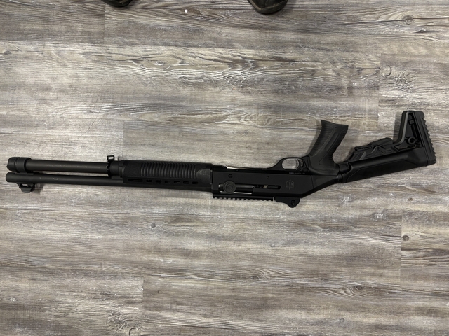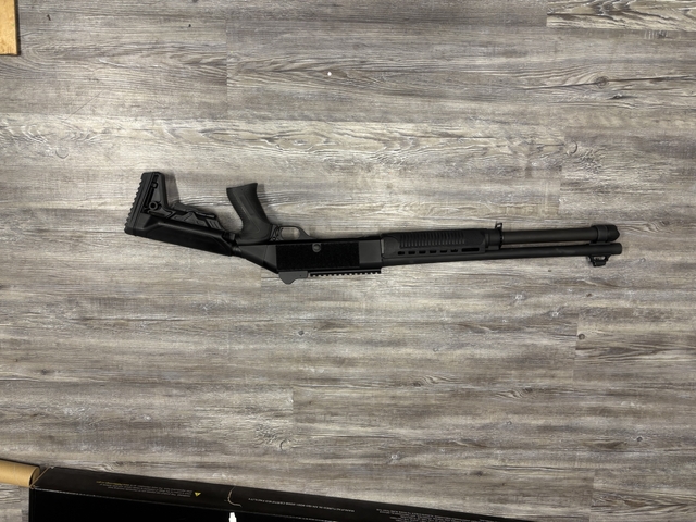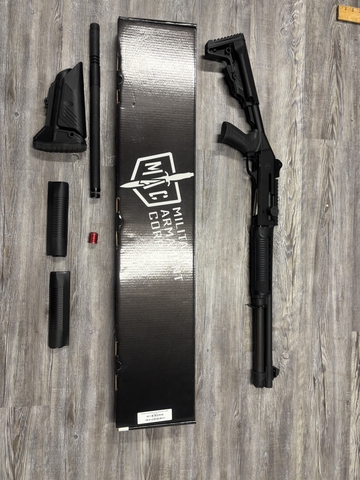 comes with 7 rd mag tube, M-Loc fore grips, mag spring follower and 4 position collapsible stock. All these "add ons" are made in the USA. The shotgun is made in Turkey and shoots all 1250 fps shot shells flawlessly. Original parts come with purchase. $650.00 OBO. call or text (620) 617-3856