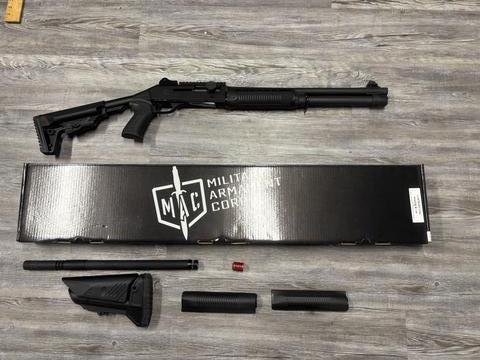 comes with 7 rd mag tube, M-Loc fore grips, mag spring follower and 4 position collapsible stock. All these "add ons" are made in the USA. The shotgun is made in Turkey and shoots +1250 fps shot shells flawlessly. Original parts come with purchase. $450.00 NOT INTERESTED IN TRADES call or text (620) 617-3856