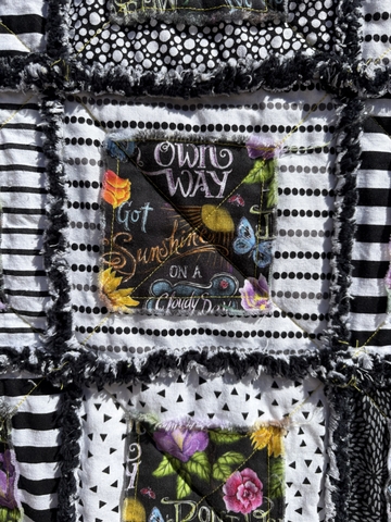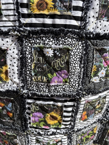 Handmade black and white rag quilt. It is 100% cotton. It measures 42" wide x 52" in length. It has been washed twice to start the "ragging" process. The more it is washed and dried, the softer and smuggler it becomes! ❤️
