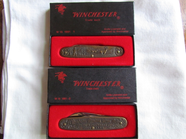 Winchester Commemorative Knife that are in box like new and are price at $75.00 per knife or 500.00 for the 8