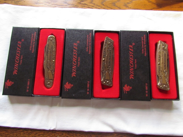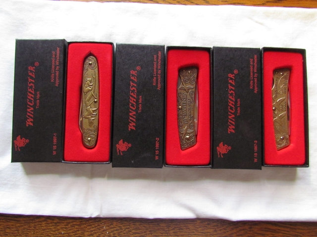 Winchester Commemorative Knifes that are in box like new and are price at 75 per knife or 900 for all 14