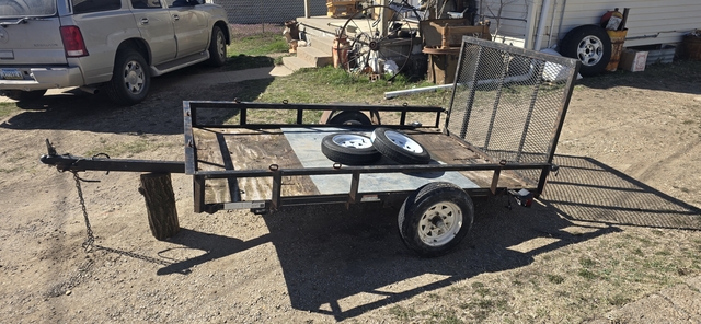 Solid trailer in pretty good shape. Lights work, brand new wheel bearings, good tread on tires and two brand new mounted spare tires. Missing a wheel well. Any questions call me at 785-324-2706