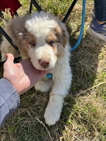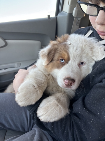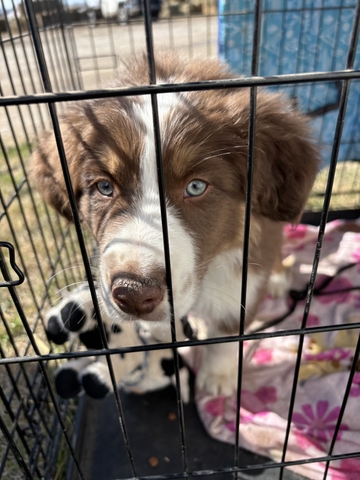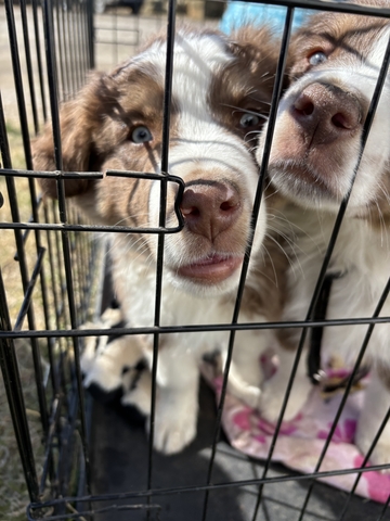 We have 4 male Australian Shepherd puppies looking for a new farm or ranch. Two red merle and two red tri's and all standard size. Raised on a farm around chickens, cattle, and cats. They are social and love people.
