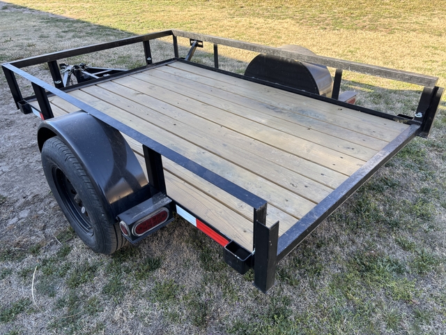This is a very nice trailer. It has a full size 3500# axle and tires so you can drag it all over the country without concern. Tires are standard 205/75/15. It tracks directly in line behind your pulling vehicle and is very smooth, no bouncing or whipping no matter what speed. It is short enough that you do not need to worry about clipping curbs when turning. Please message me through this site for questions or for contact info. Thanks