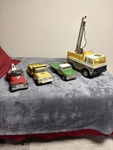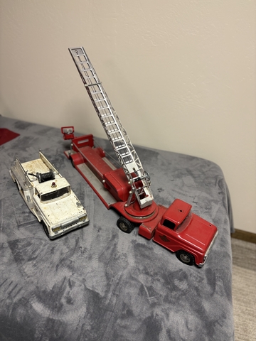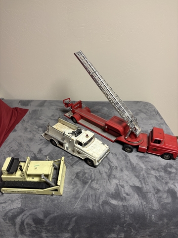 Vintage toys most from late 50's and early 60's . Including an electric train, fire trucks, construction equipment , more trucks etc for sale. More then what's shown in photos. 6206172384. In Ellinwood Ks.