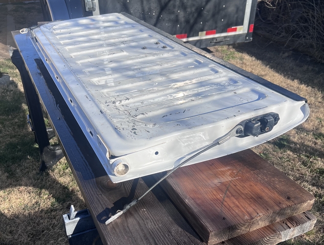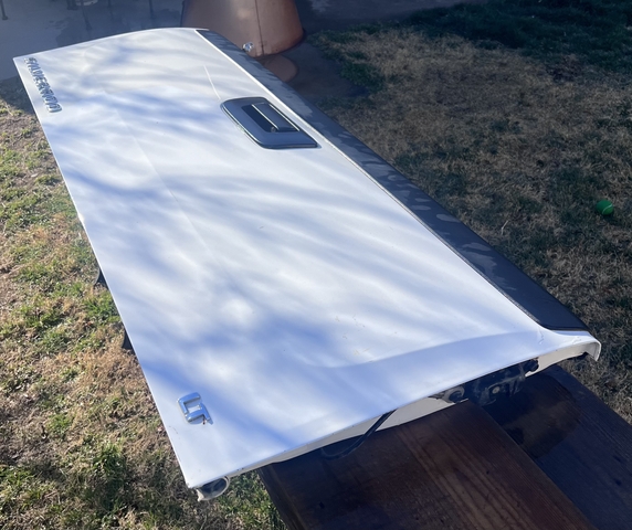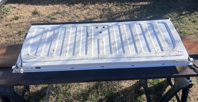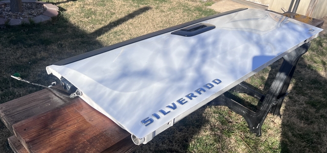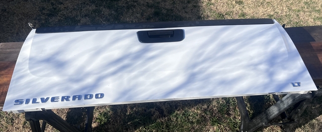 Have a Chevrolet Silverado LT White Tailgate in a lightly used condition. Online shows it should fit a 2014-2018 Chevy Silverado LT 1500 and should also fit 2500 and 3500 models. (BUYER RESPONSIBLE TO MAKE SURE THIS FITS YOUR VEHICLE!) This does not have a camera or lock in the tailgate. Tailgate Latch appears to be in working condition, and has both cables to secure to pickup. (NO HOLDS)(No Deliveries)(CASH ONLY) LOCATED IN HAYS, KS