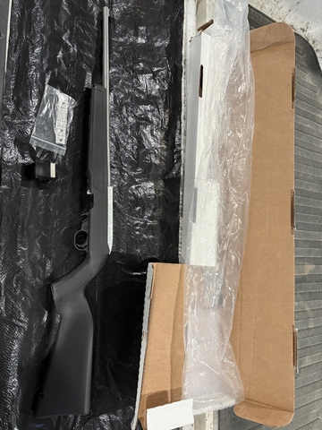 Brand new in the box ruger 10/22 has the newest updated factory stock and features like cutout on sides of magazine well to pick the 10rd mags out has mlock slots on the end of stock has a stainless barrel with iron sights has the picatinny rail in box for a scope or what not factory puts in the bx trigger now on all new models so should be adjustable these with a stainless barrel are 289.99$ without tax on sale the black ones are 229.99$ without tax on sale make me an offer worst I can say is no text me at 620-204-0454 I won't answer phone calls due to scammers or message me on here and when I check it I'll get with you thanks