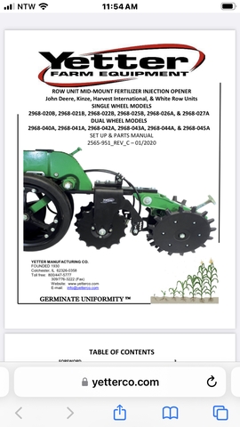 Yetter fertilizer system off johndeere 1775 planter. used one season. 12 lefts an 12 rights. Would work for 12 row duel placement or 24 row single placement. $2,400. Call or text 785-475-429seven