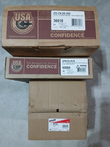 Ring and pinon 3.55 axle ratio USA Standard gear. Track lock differential, axle seals, Koyo and Timken bearings all new still in boxes. Install kit.