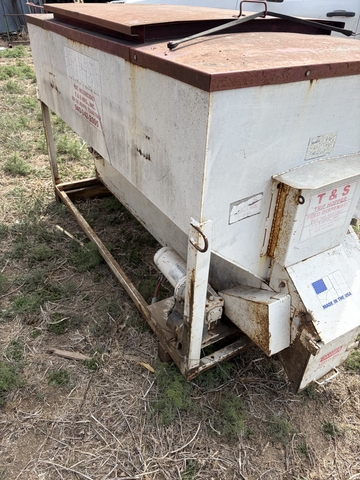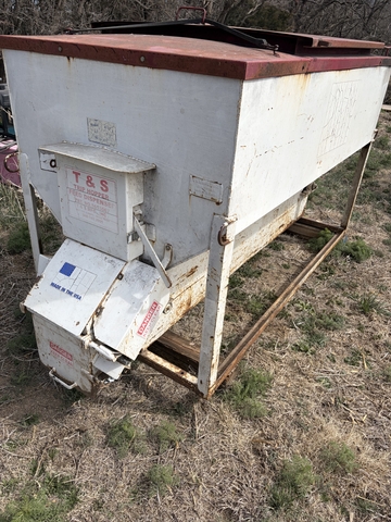 1500lb cake feeder. Works well only selling to get a smaller size. Comes with wiring harness and counter. I have only ran cake and dried distillers through it. No problems with it.