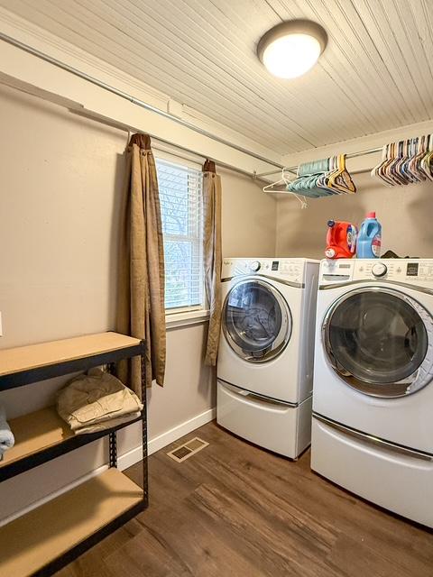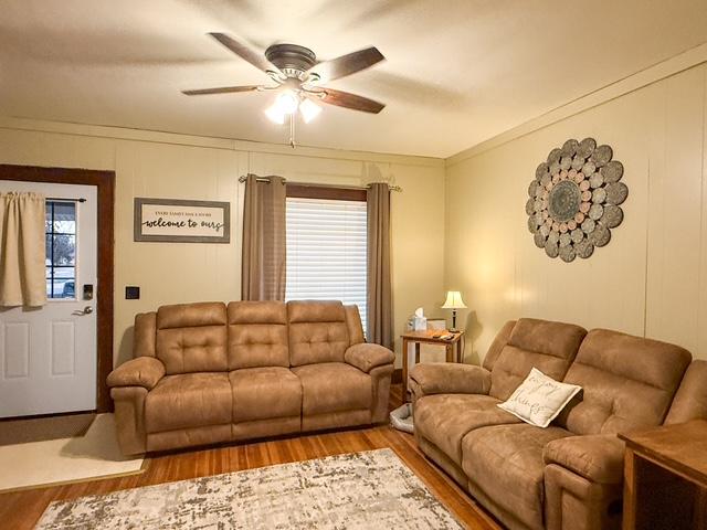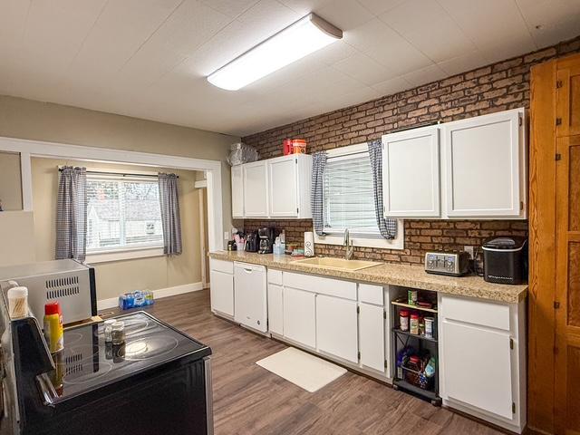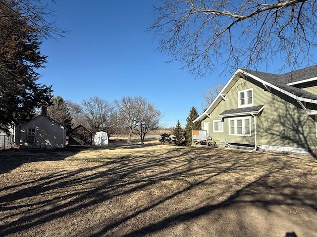 Situated on a corner lot along the edge of town, this 11/2-story home offers timeless character paired with thoughtful updates. Originally built in 1910 and relocated to its current site with a new foundation in 1967, the home combines history with lasting improvements. A covered front porch welcomes you in and offers the perfect spot to relax and unwind. Inside, the living room features beautiful wood floors and flows seamlessly into a spacious dining area, highlighted by a brick accent wall with a mantel and cozy wood-burning stove. The kitchen offers generous space and storage, along with recent updates including new flooring, countertops, lighting, sink, and garbage disposal. Just off the kitchen is a laundry room with newer flooring and additional storage. The updated bathroom is thoughtfully designed and also provides ample storage. Two bedrooms complete the main level. Upstairs, hardwood floors continue throughout three additional bedrooms, offering plenty of space for family, guests, or home office needs. The basement provides abundant storage and excellent potential for future development, whether you envision additional bedrooms, a family room, or expanded bathroom space, as an extra toilet is already in place. Step outside and you'll appreciate the generous yard space, offering plenty of room to enjoy the outdoors. The property also features convenient off-street parking and three storage sheds, providing excellent space for tools, equipment, or hobby needs. This home has seen several major updates in 2024, including new siding, roof, windows, exterior doors, and guttering. Central heat and air were updated in 2018, and three mini-split units help keep the second story comfortable year-round. With five bedrooms, major exterior updates, and room to grow, this property offers both character and practicality.